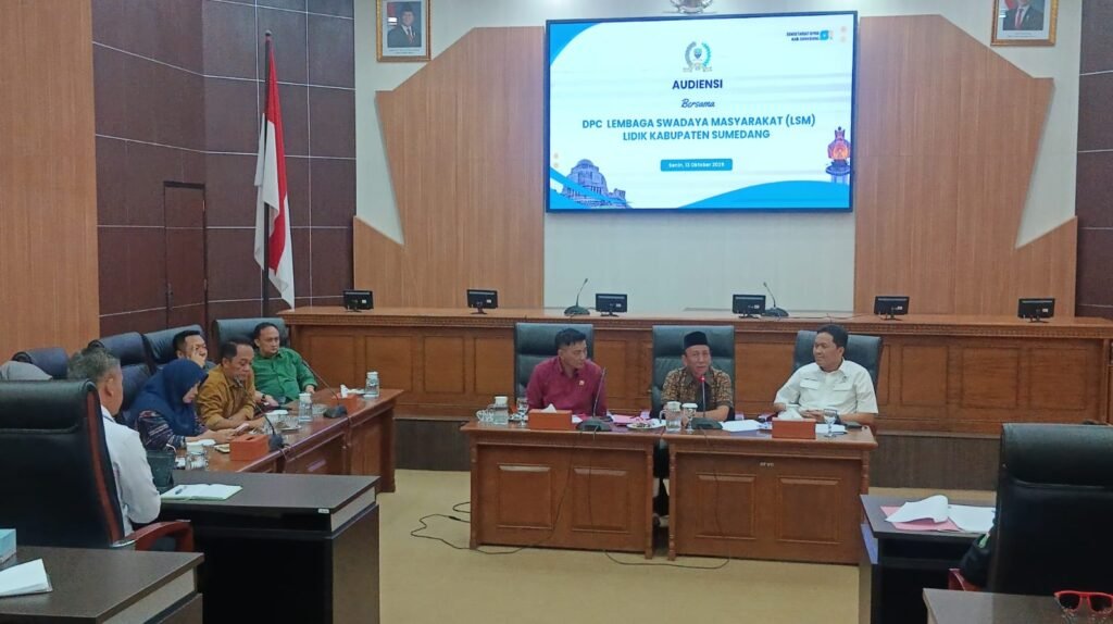 Kegiatan audiensi antara Komisi I dan Komisi IV DPRD Kabupaten Sumedang bersama LSM LIDIK digelar pada Senin, 13 Oktober 2025, bertempat di Ruang Rapat Paripurna DPRD Sumedang. Rapat dipimpin oleh Wakil Ketua DPRD, Atang Setiawan, S.E, serta dihadiri oleh wakil ketua dan anggota komisi I dan IV, Kabag Hukum Setda Sumedang, Dinas Lingkungan Hidup dan Kehutanan, Perum Perhutani KPH Sumedang, dan pengurus LSM LIDIK Cabang Sumedang.