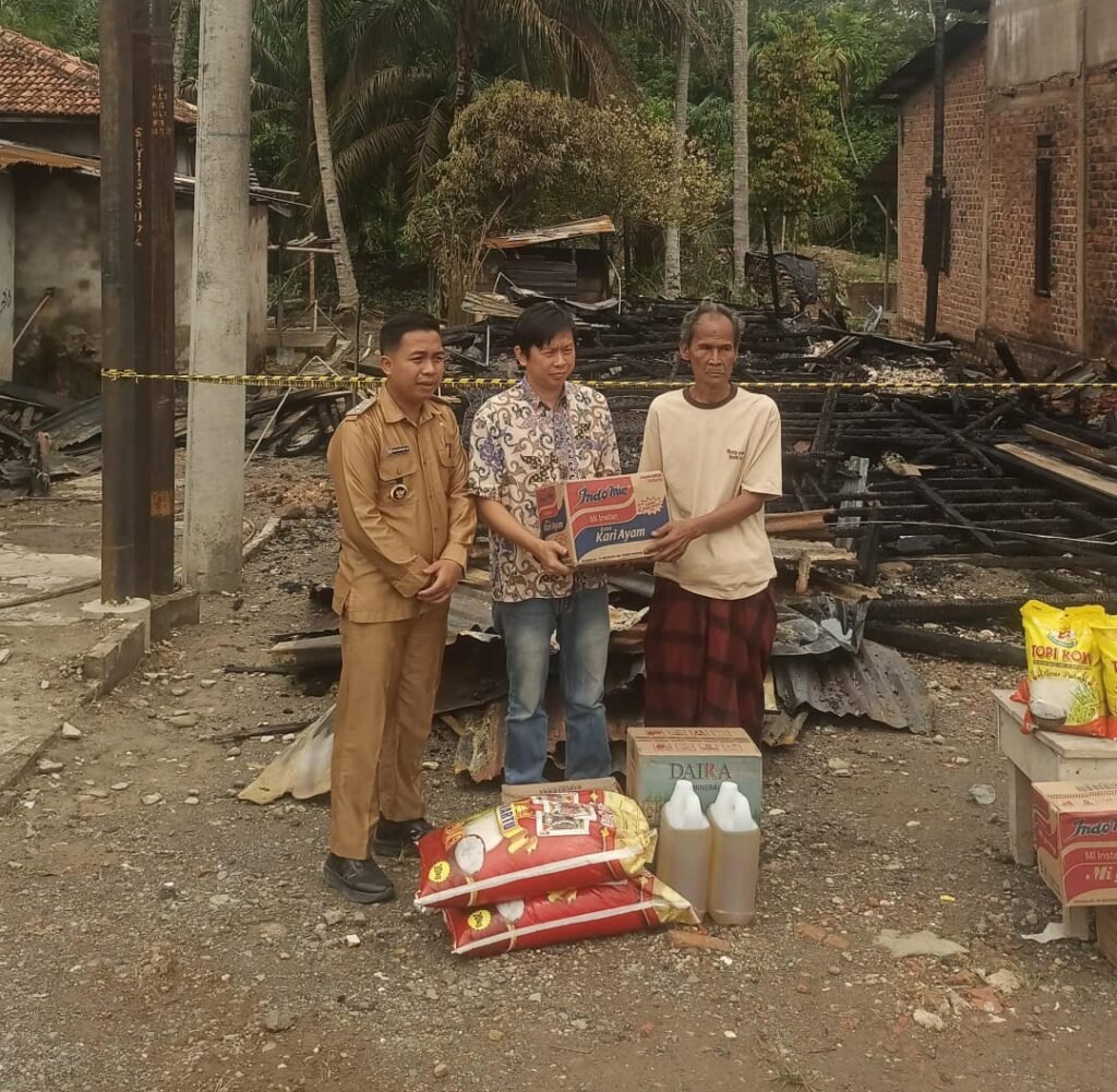 Bayung Lencir, Musi Banyuasin, (Patroliindo.com). PT. CRBC menyerahkan bantuan untuk korban kebakaran Marten, Warga Desa Simpang Bayat, Kecamatan Bayung Lencir, Kabupaten Musi Banyuasin, Rabu (8/10/2025). Marten menceritakan rumahnya mengalami kebakaran pada 6 Oktober lalu. Dirinya tak menyangka jika rumah tinggal mereka habis dilahap si jago merah. “Saya tidak menyangka mendapatkan cobaan ini, saya pribadi sangat terpukul atas kejadian ini. Namun, berkat dukungan dari masyarakat sekitar kami merasa lebih tenang,” ceritanya saat menerima bantuan dari PT. CRBC.